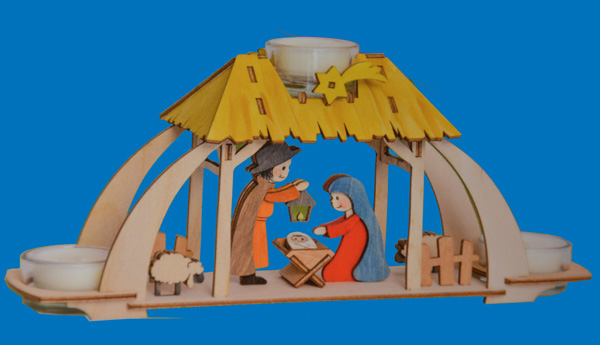 Teelichtbogen Krippe erzgebirgische Holzkunst 27 x 6 x 13 cm für Kinder ab 5 Jahren