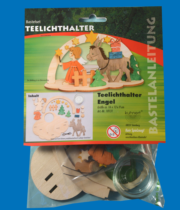 Art.Nr.:Hersteller:-Teelichthalter Engel, Stern und Eselchen, BastelsetTeelichthalter Engel, Stern und Eselchen erzgebirgische Holzkunst 16 x 13 x 9 cm für Kinder ab 5 Jahreninkl. MwSt (16%)zzgl. VersandkostenLieferzeit: sofort lieferbar Stk In den Warenkorb
