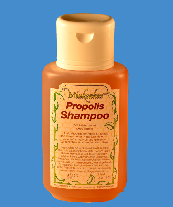 Honig Propolis Shampoo für feines und strapaziertes Haar. Das Haar wird voluminös, kraftvoll und glänzend. Zur täglichen schonenden Haarpflege.