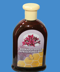 Das Rosmarin-Honig-Erfrischungsbad haben wir neu für Sie, liebe Kunden, in unser Programm aufgenommen. Wellness kann man auch im heimatlichen Bad betreiben. Rosmarin ist wegen seiner belebenden und anregenden Wirkung bereits bekannt. Natürlich können Sie auch mit einem Sträußchen Rosmarin baden, aber in diesem Rezept wird auch ein großer Anteil Honig verwendet, der Ihre Haut pflegt und nährt. Zusammen in Ihrem Badewasser sind die beiden eine Wohltat für Körper und Seele z.B. auch nur als schnelles Fußbad im Winter.